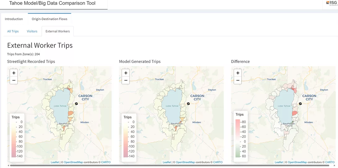 By comparing big data with empirical survey data, our team helped TRPA determine that Replica, while imperfect, was the better starting point for refining mode-of-travel shares. Building on this insight, we developed a custom dataset from StreetLight LBS data that categorized trips by residents, employees, and visitors. This tailored solution provided a more accurate, defensible foundation for TRPA’s congestion and travel demand modeling.