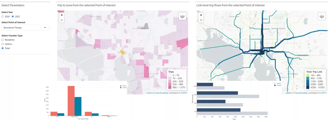 For the Tampa Bay Regional Travel Survey, understanding travel patterns in a high-tourism region required a multisource approach. Given the region’s dynamism, relying on a single data source could have missed important insights into visitor travel behavior. To address this, we combined Replica data, LBS data, and a visitor-specific travel survey using rMove™. This combination allowed us to cross-validate data, capture seasonal visitor fluctuations, and identify key origins for out-of-state travelers.