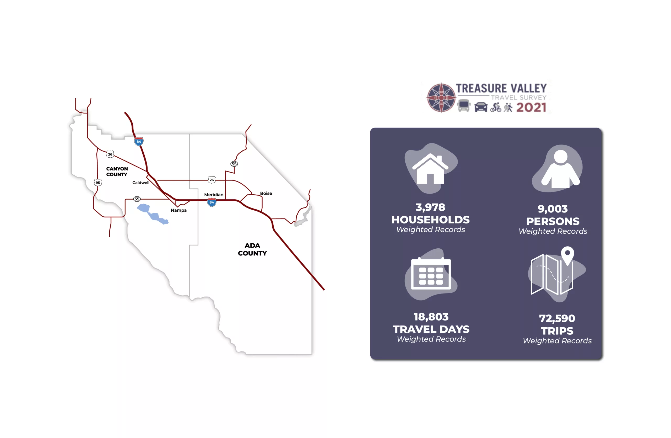The Community Planning Association of Southwest Idaho (COMPASS) informs its planning process through data collection and analysis efforts that provide critical data on travel patterns in the region. Household travel surveys, passively collected data analysis, and transit on-board surveys are key components of these efforts that help organizations like COMPASS understand the daily travel habits of households in the region, including how they travel and how far they go.
