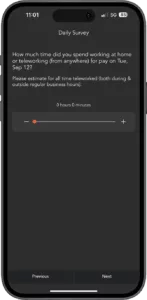 Daily surveys can ask day-specific or typical behavior questions, including time spent teleworking, deliveries to home, and energy consumption at home.