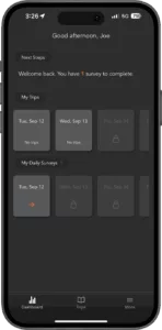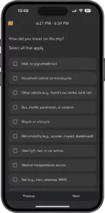 Trip surveys can ask a range of questions about users’ trips, including trip purpose, travel party, parking information, and electric vehicle charging.