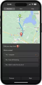 Trip surveys first orient users before asking detailed questions about how they traveled and why they made the trip. They do this by showing the trip origin and destination on a map.